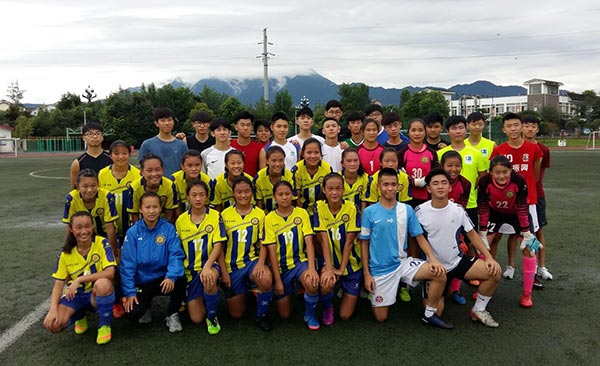 參訪團成員與足球隊隊員合影留念