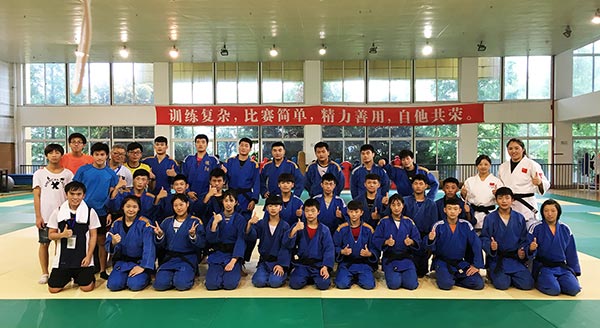 參訪團成員與柔道隊隊員合影留念