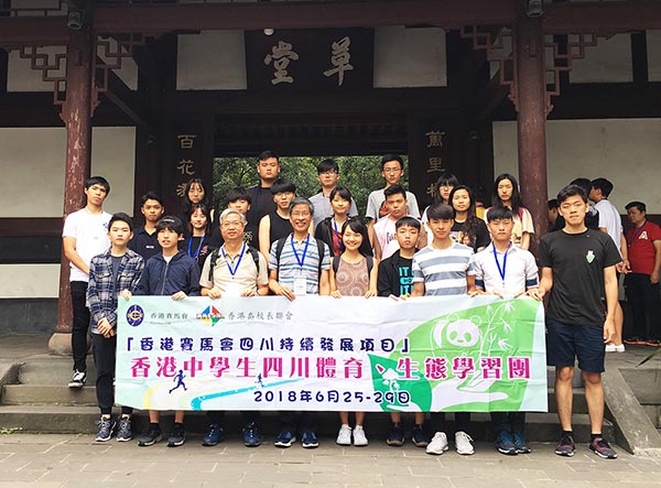 2018年6月25日至29日,由香港賽馬會、香港島校長聯會組織的「香港賽馬會四川持續發展項目」香港中學生四川體育、生態學習團在四川進行為期五天的交流考察活動,交流團除了進行了體育和災後應急培訓,還參觀了都江堰、中國臥龍大熊貓博物館、臥龍自然與地震博物館、汶川地震遺址等歷史生態景點。