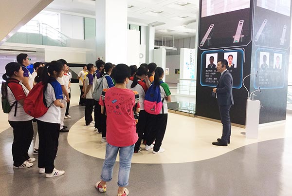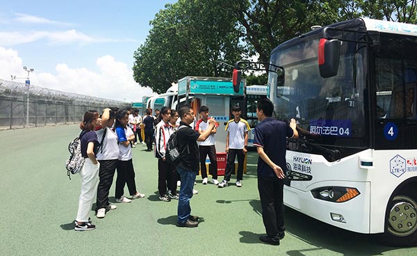 學生們來到深圳市海梁科技有限公司,了解城市公交行業前沿科技,認識全面電動化、智能化、共用出行的一體化解決方案。