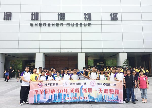 2018年7月4日,由香港新界校長會組織,迦密柏雨中學、迦密愛禮信中學一行139名師生來到深圳進行参觀交流,了解改革開放40週年以來深圳特區的發展成就,在交流過程中對内地的高速發展留下了深刻印象。