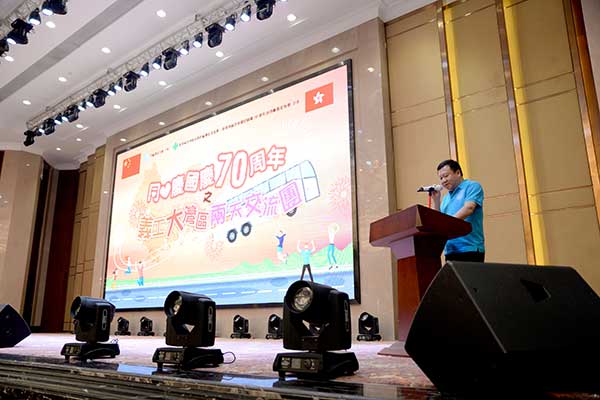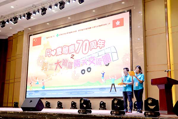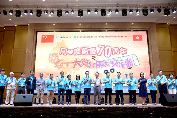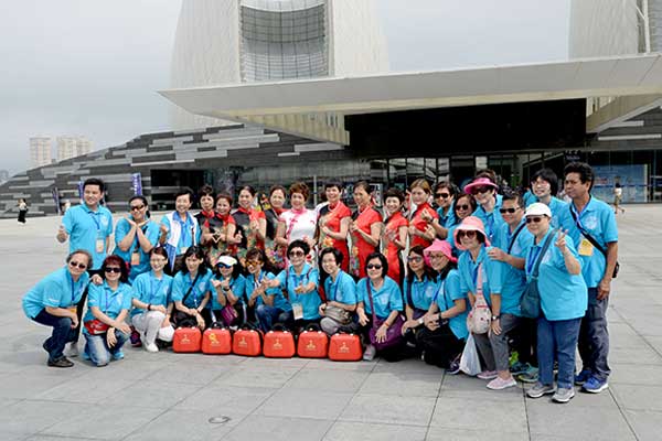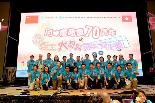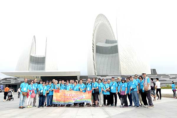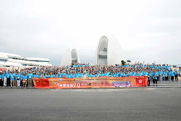 5月25日上午,珠海大劇院前熱鬧非凡,由南區建設力量主辦,香港島各界聯合會南區地區委員會、香港南區各界慶祝國慶70週年活動籌備委員會合辦,華暢東方接待的「同心慶國慶70周年-義工大灣區兩天團」正式展開行程。700名香港義工跨過世界七大奇蹟之一的「港珠澳大橋」,齊聚在大劇院廣場,慶賀中華人民共和國70周年。參與活動的義工們統一著淺藍色衫,展開40呎的橫幅合影留念,用笑容傳達心中的喜悅!