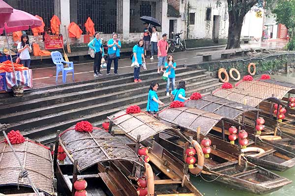 雨中水鄉更增意趣,團員們興致不減