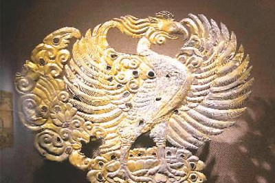 鳳鳥紋鎏金銀飾片,吐蕃時期,美國普利茲克收藏