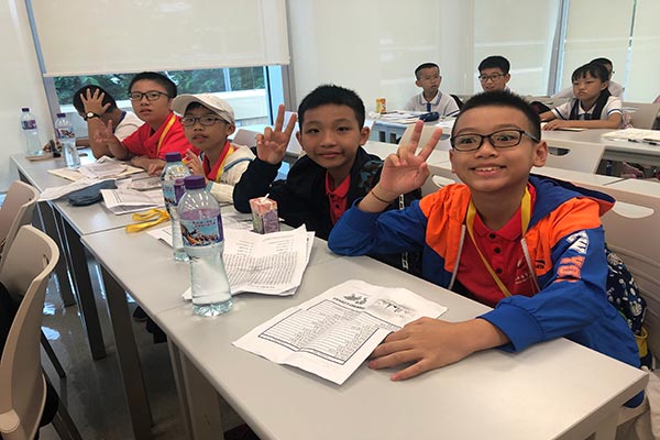 7月13日上午,交流團學生期待已久的小小翻譯官比賽終於開始了,首先是舉行的是一小時的筆試比賽,学生们即席揮毫,在有限的時間裡使出渾身解數,展現各自的翻译能力,然後進行现场口语测试,选出两环节合计成绩最优秀每级五人為下午的第三環節活動——现场翻译观摩做準備。
