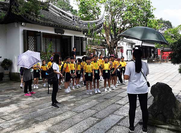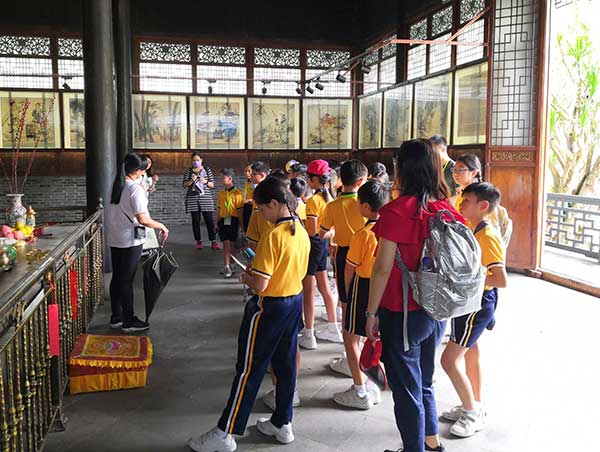 下午,交流團來到嶺南地區最大的私家古典園林—中山詹園,詹園建築以蘇杭園林為基調,以中國傳統的天人合一思想建造,綜合中國古典園林之精髓,強調嶺南水鄉的佈局脈絡,結構簡潔而凝重,風格古樸而灑脫,學生們通過遊覽除了認識到傳統的古典園林建築風格,還感受到中國傳統中人與自然的和諧關係及孝道文化的重要。