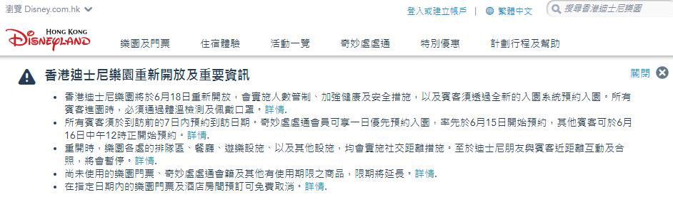 據香港電台網站報道,受新冠肺炎疫情影響,香港迪士尼樂園自1月26日起暫停開放,成為全球第二家暫停開放的迪士尼樂園,至今已近5個月。香港另一主題樂園海洋公園已於6月13日重開,每日會限制每日入場人次及實施一系列防疫措施,並推出多項港人優惠。