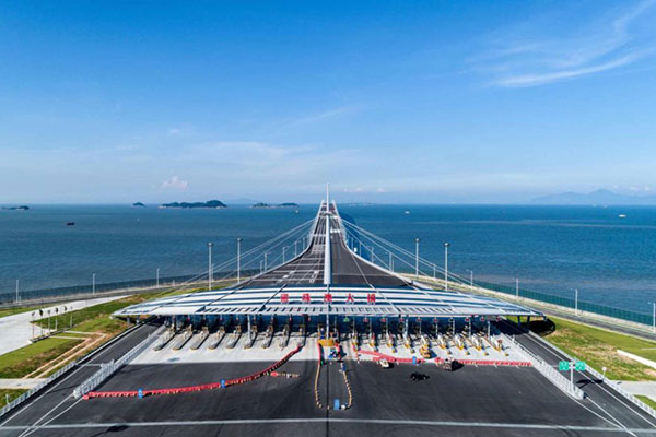 考察團團員早上由香港學校出發,乘旅遊巴士經港珠澳大橋前往珠海。港珠澳大橋是「一國兩制 」框架下、粵港澳三地首次合作共建的超大型跨海通道,大橋建成後,大大縮短了珠三角西岸大部分地區和香港的行車距離。