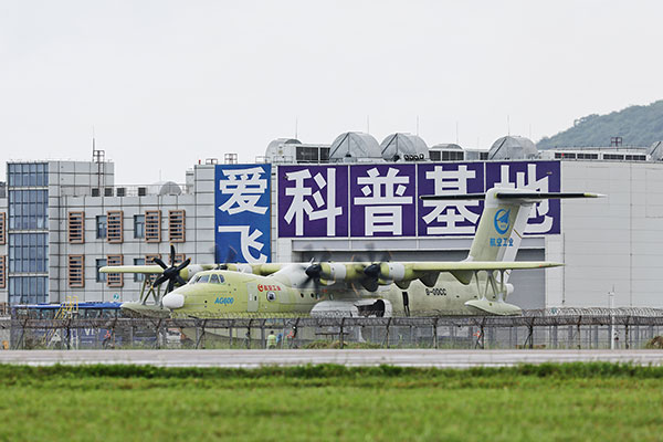 第四站:飛機生產制造廠房。考察團可以零距離和飛機接觸,參觀飛機的組裝現場:全世界在研最大的水陸兩棲飛機—AG600,西銳公司設計制造的小型私人飛機—西銳SR20/22。