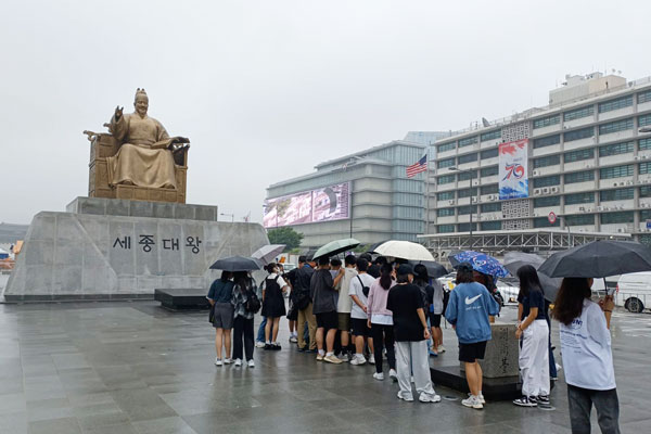 7月10日,交流團來到景福宮,景福宮是遊覽首爾必打卡的一站,它見證了朝鮮王朝數百年滄桑變幻。如今的景福宮是首爾國立民俗博物館和韓國國立古宮博物院所在地,向世界各地人民展示韓國悠久的歷史文化。