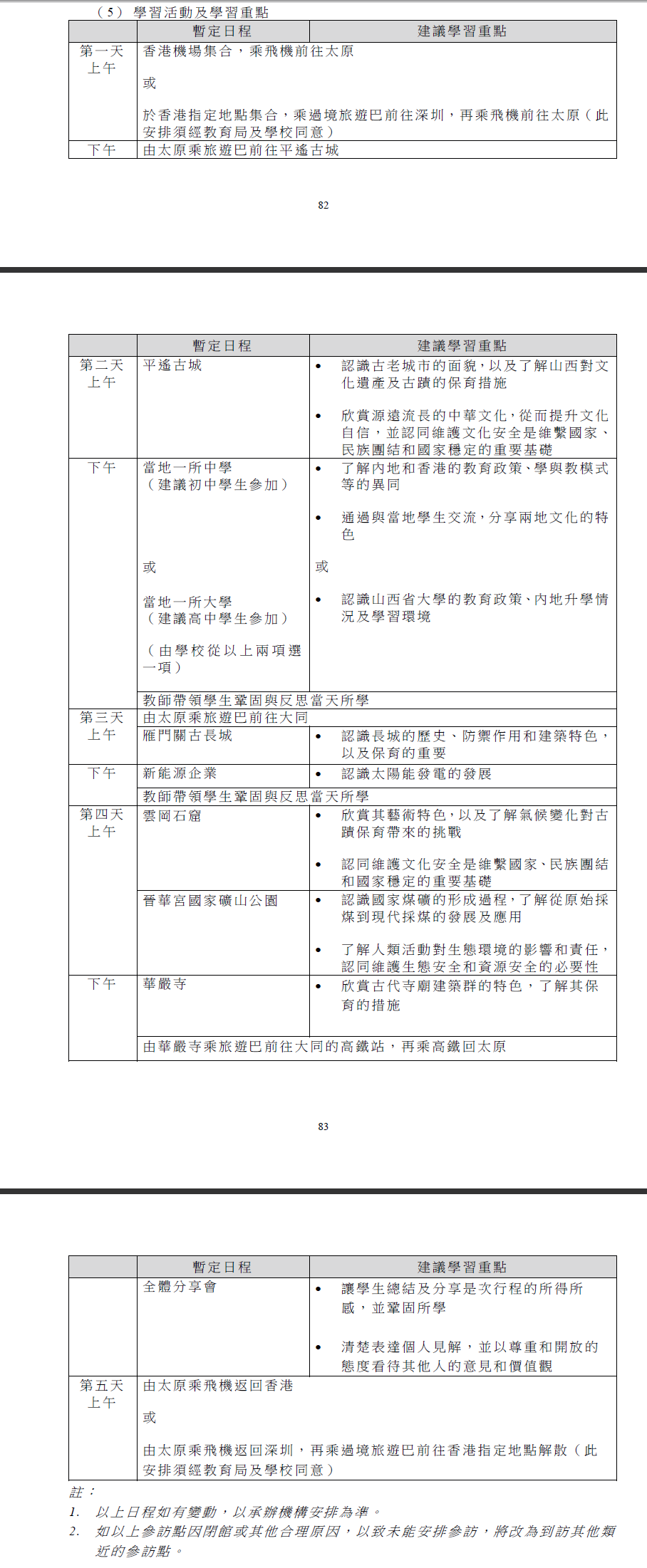 Ø 學校可按校本的學習需要於回程後安排學習分享會,分享會形式由學校自行決定,例如:課堂滙報、週會分享、專題研習報告等。