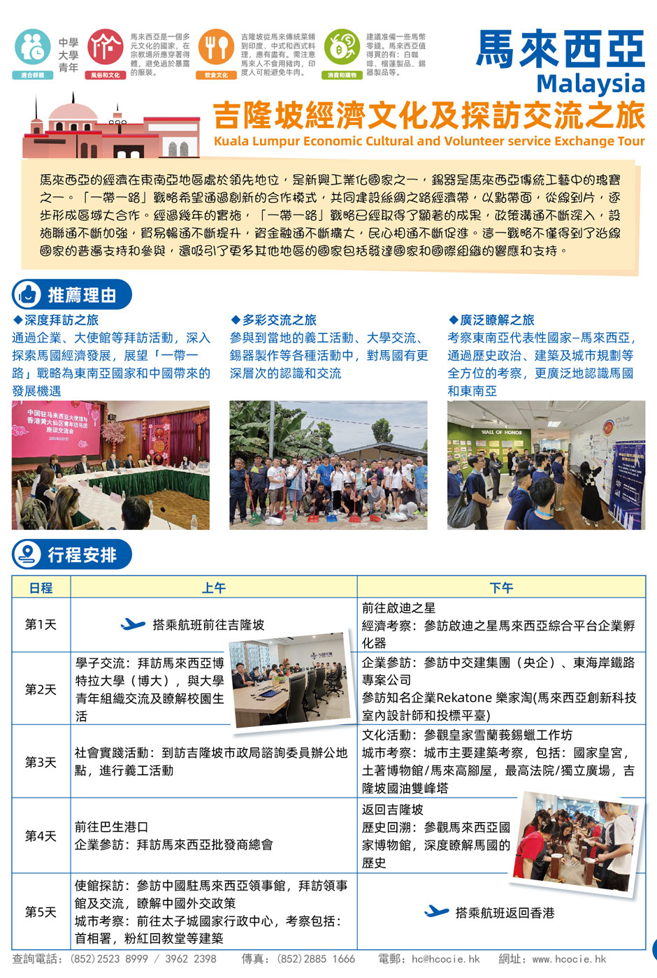 ★參與到當地的義工活動、大學交流、錫器製作等各種活動中,對馬國有更深層次的認識和交流;