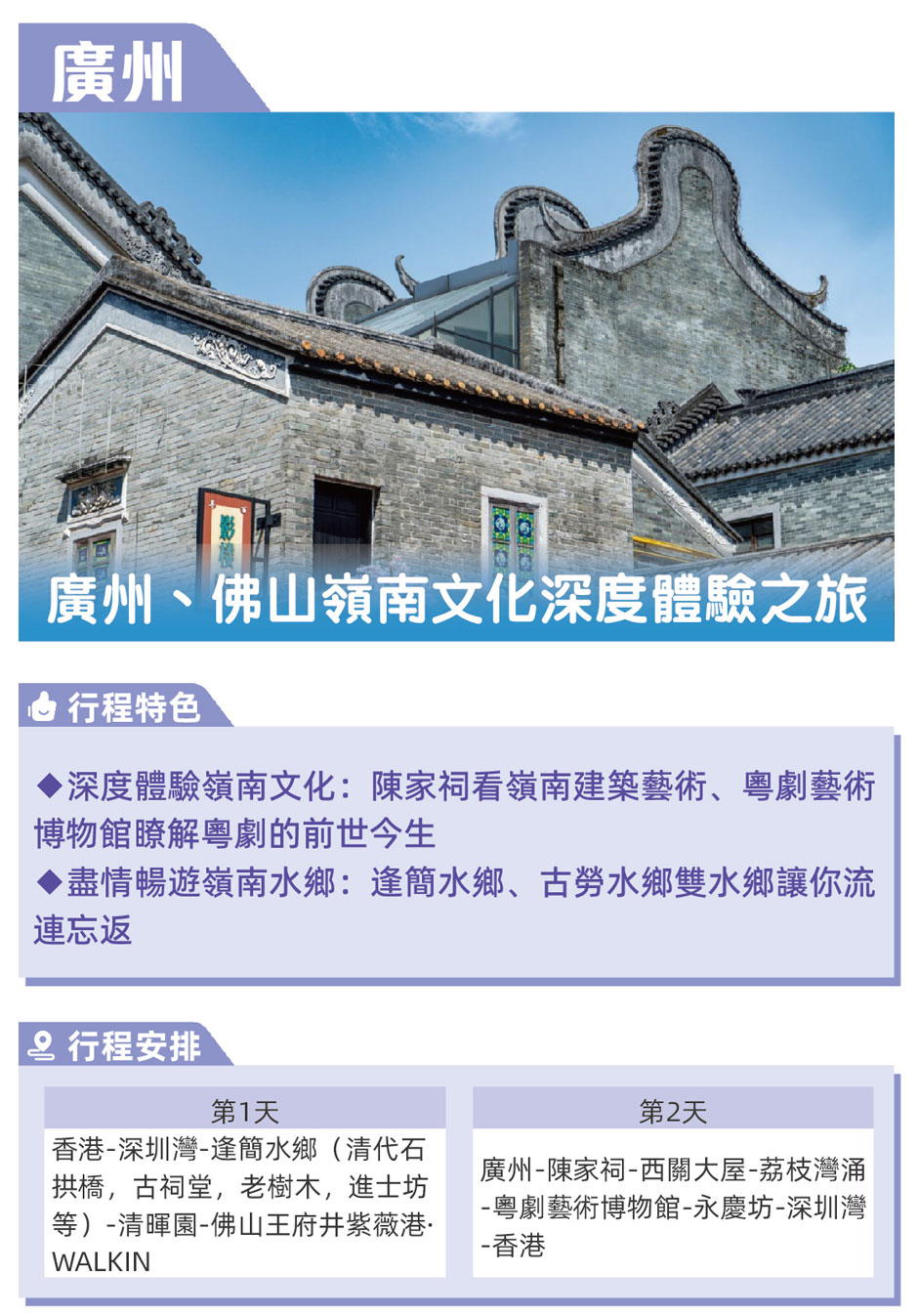 ◆深度體驗嶺南文化:陳家祠看南建築藝術、粤劇藝術博物館瞭解粤劇的前世今生;