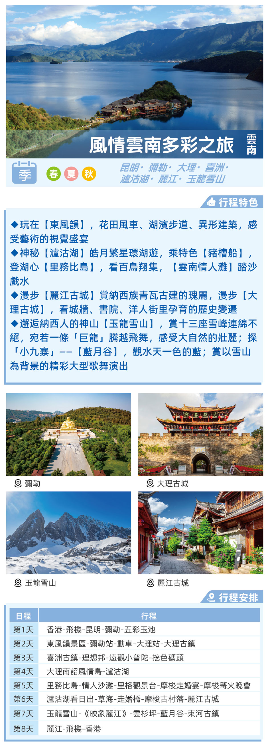 昆明·彌勒·大理·喜洲·瀘沽湖·麗江·玉龍雪山