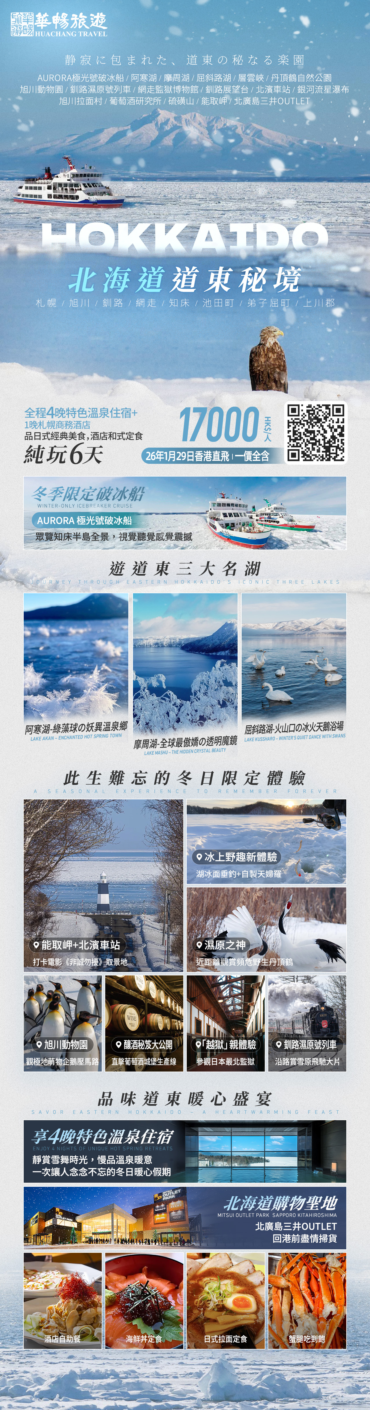 1. 香港至北海道往返經濟客位團體機票,機場稅、燃油稅;(機場稅、燃油稅費用 HK$832/人,以政府及航空公司公佈為準,參加者或須補回差價);旅遊資訊